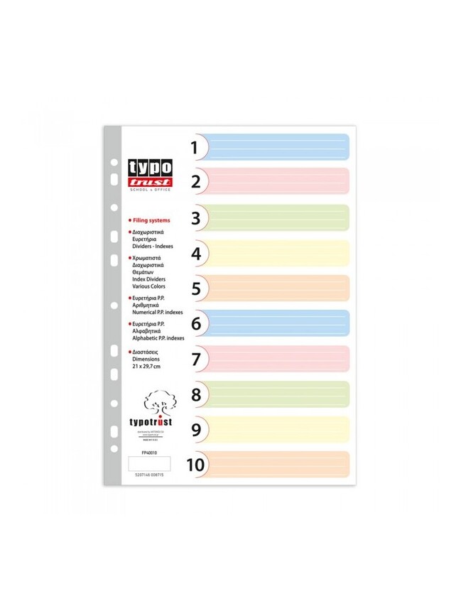 Διαχωριστικά Ντοσιέ Α4 10 θεμάτων χρωματιστά